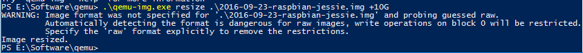 PS E:\Software\qemu> .\qemu-img.exe resize .\2016-09-23-raspbian-jessie.img +10G